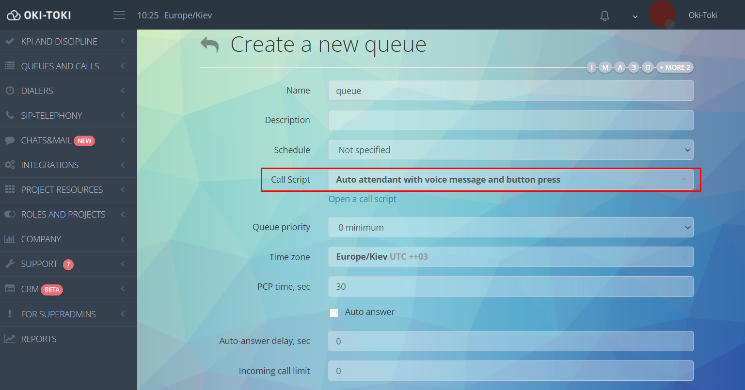 2. Wprowadź nazwę kolejki i wybierz scenariusz, który będzie na niej używany. Zapisz ustawienia.