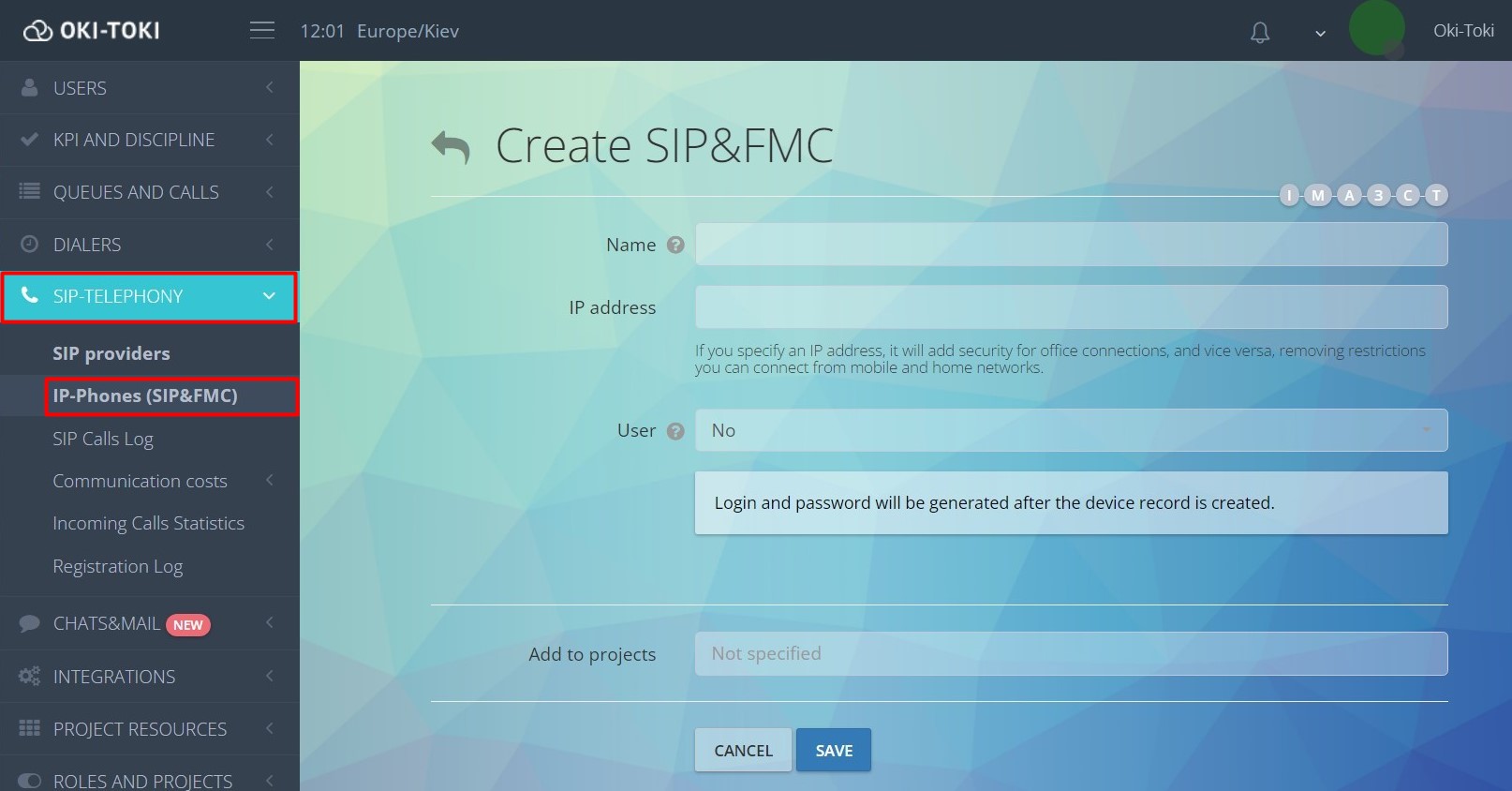 - W sekcji Telefonia SIP -> Telefony IP -> Stwórz;