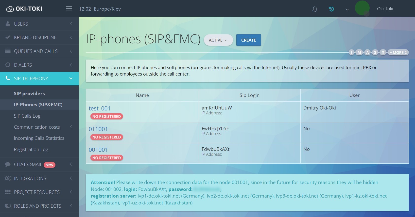 - Dane rejestracji SIP zostaną wygenerowane automatycznie po naciśnięciu przycisku “Zapisz”. Teraz musisz je wprowadzić w ustawieniach softfonu, telefonu IP lub zewnętrznej centrali telefonicznej;
