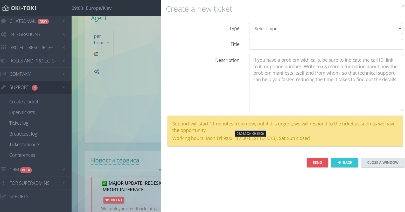Nie tworzymy tylko wygodnego narzędzia do kontaktowania się z naszą pomocą techniczną. Przygotowujemy system biletowy jako pełnoprawny produkt dla innych firm zainteresowanych pełnoprawnym systemem obsługi zgłoszeń „prosto z pudełka”. Opowiem o tym szczegółowo w artykule, który zostanie opublikowany tuż za tym, czekaj na aktualizacje na blogu i w wiadomościach Oki-Toki 🙂