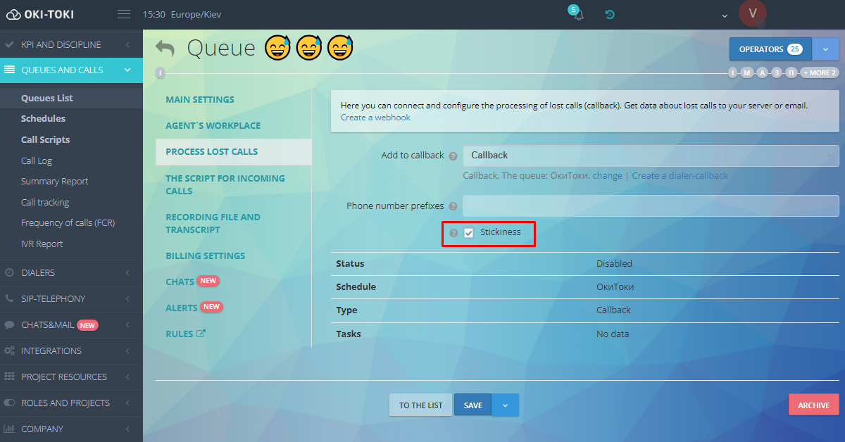 Nazwaliśmy to funkcją “Lepki callback”! Może ona być używana zarówno podczas dodawania zadania do callback z formularza CRM, jak i podczas obsługi straconych połączeń przychodzących. Możesz przydzielić kontakt do konkretnego użytkownika, albo do obecnego użytkownika obsługującego kartę klienta w CRM. Obsługa straconych przydziela callback do ostatniego operatora, który rozmawiał z tym klientem. A propos, w 2022 roku dodaliśmy unowocześnioną lepkość grupową, możesz przeczytać więcej o niej tutaj.