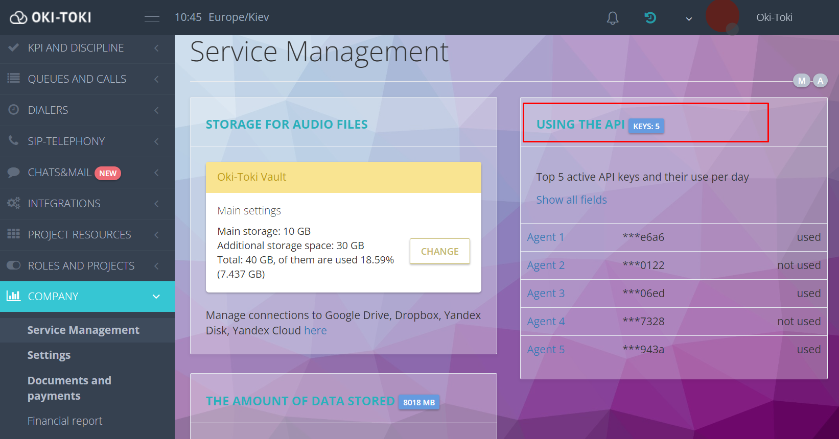 W sekcji “Zarządzanie usługami” dodano widget, który pomoże kontrolować wydatki na wywołania API – widget wyświetla wszystkie aktywne klucze API w systemie i liczy ilość wywołań API dokonanych za pomocą tych kluczy.