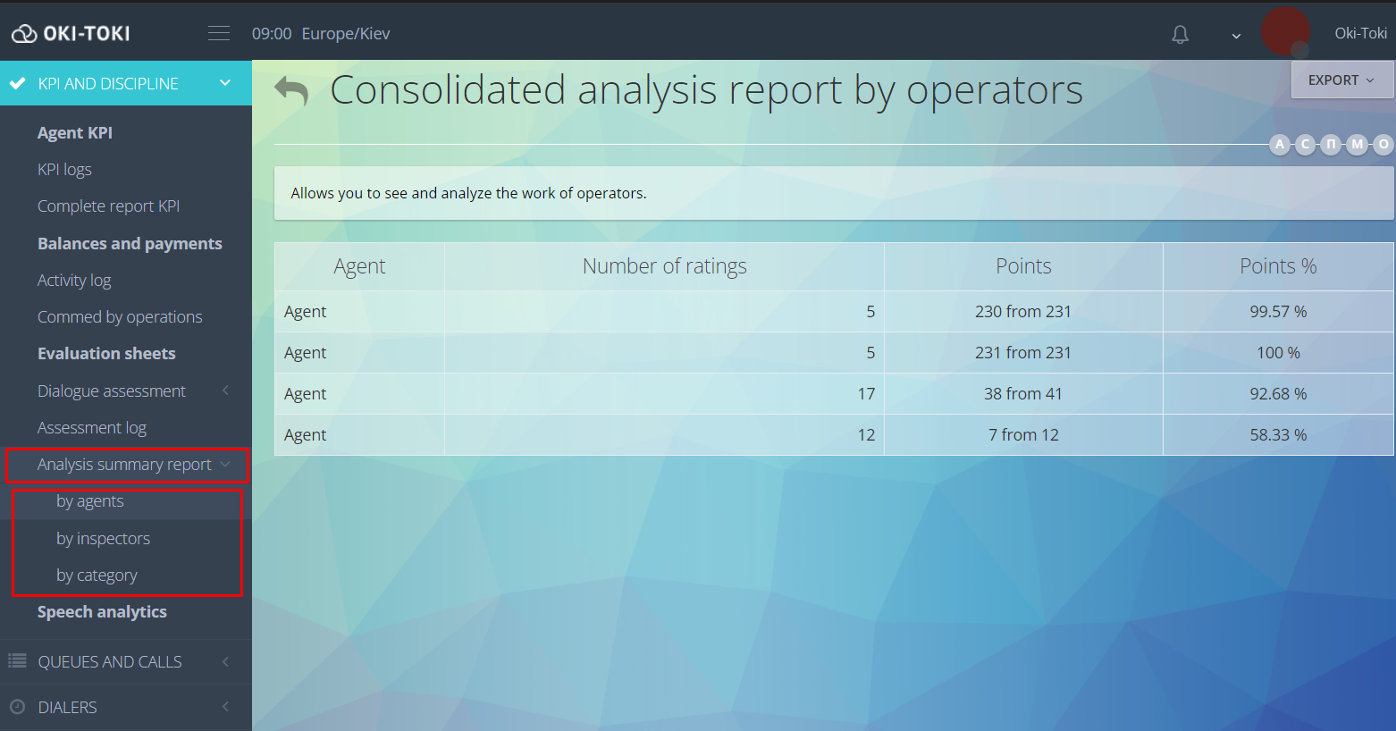 Stworzyliśmy środowisko całego cyklu do oceny pracy operatorów: stwórz listę kontrolną do oceny jakości obsługi, przygotuj plan kontrolny i przydziel odpowiedzialne osoby. Po przeglądzie, wyniki według kategorii i pytań na liście kontrolnej, według operatorów i ich grup dostępne będą w raportach. Więcej na ten temat w naszym artykule.