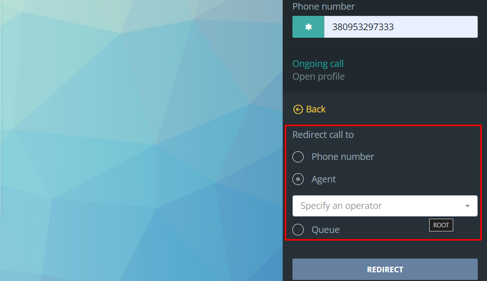- Dodaliśmy możliwość przekierowania abonenta na zewnętrzny numer telefonu, do użytkownika lub do kolejki, prezentując go jako rozwijane menu z możliwością wyszukiwania.